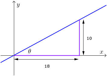 $\tan\theta=\frac{AB}{CB}$tanθ=ABCB. This is the value of the gradient we figured out just before!