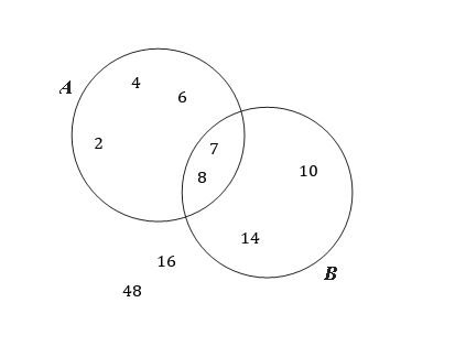 Take note of how the numbers that do not fit into either set are placed outside the circles, but still within the bounds of the universal set.