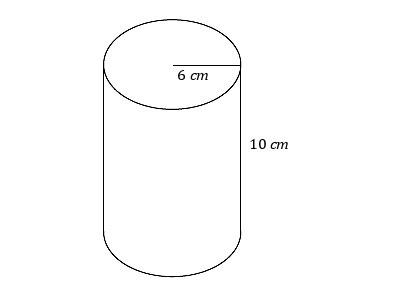 Think: The cylinder will unravel into a rectangle with the dimensions $2\pi r$2πr and $h$h and two circles with radius of $r$r. We can use the formula $SA=2\times\pi r^2+2\pi r\times h$SA=2×πr2+2πr×h to determine the surface area.