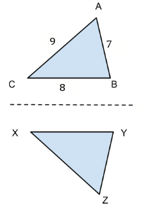 $\triangle ABC$△ABC is reflected along the dotted line and its image $XYZ$XYZ is produced.