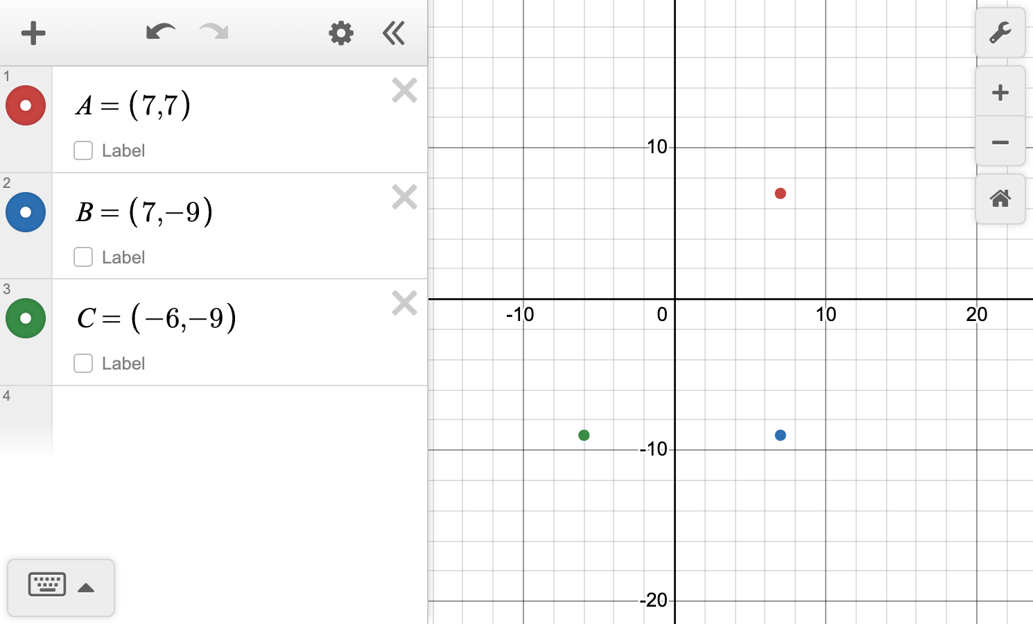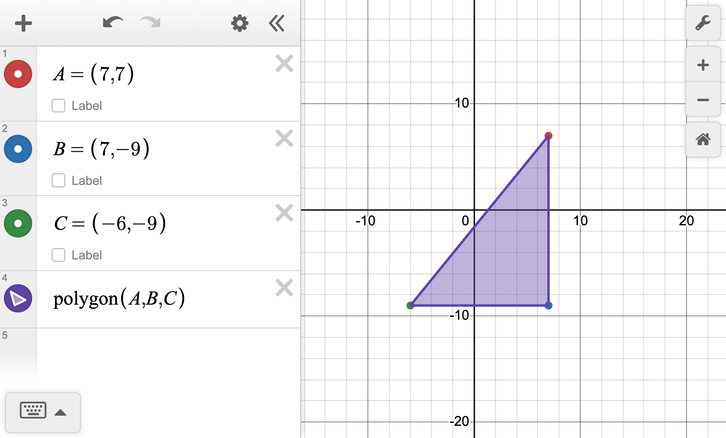 Consider the points A\left( 7,\,7\right),\,B\left( 7,\,-9\right) and C\left( -6,\,-9\right).
