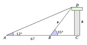 Using the rounded value of the previous part, evaluate the height $h$h, of the tower.
