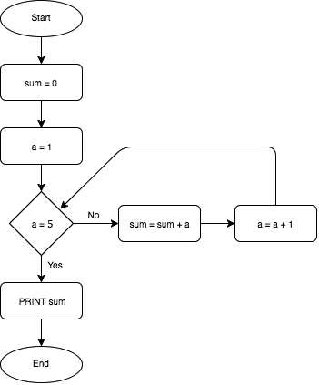 At the end of the third loop the value of a is 5 and so the condition for the loop to end has been reached. The final value of sum is 9. This is the value that will be printed (OUTPUT) from the algorithm.