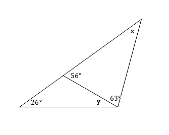 We also know that $w+x+y=180$w+x+y=180 because Angle sum of a triangle is 180