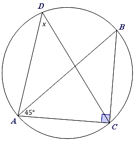 In the diagram, $\angle BAC=45^\circ$∠BAC=45°. Calculate $x$x and give reasons for your answer.