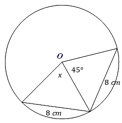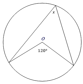 Calculate the angle marked $x$x at the centre of the circle. Give reasons for your answer related to the properties of a circle.
