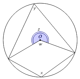 In the diagram, $O$O is the centre of the circle. Show that $x$x and $y$y are supplementary angles.
