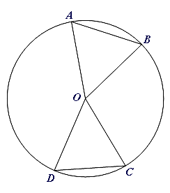 Consider the figure to the right, in which $O$O is the centre of the circle, and $\angle AOB=\angle DOC$∠AOB=∠DOC.