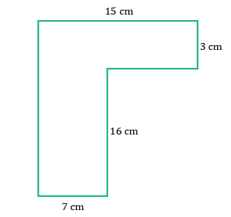 The composite shape can be broken down into one smaller rectangle and one smaller triangle as shown: