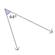 We can refer to this angle as either $\angle AOB$∠AOB or $\angle BOA$∠BOA since the path is the same in both directions.