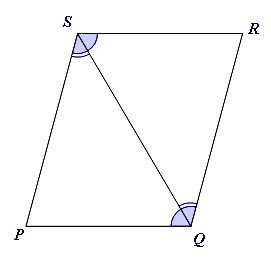 State the most direct reason why $\triangle PSQ$△PSQ is congruent to $\triangle RQS$△RQS.