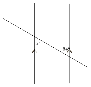Two parallel vertical lines are intersected by a single diagonal line, slanting from the lower left to the upper right, creating two intersections. Small arrow symbols on the vertical lines indicate that they are parallel.